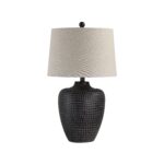 Embracing the earthenware trend is easy when you’ve got the stylish Agueda table lamp on display in a dining room, living room or bedroom. Sitting atop its brass-plated fitting is a lovely oatmeal linen drum shade that diffuses ambient light while its generously sized body features a hammered texture with a dark brown finish that brings plenty of interest to any home.
