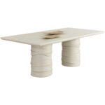 Inspired by the opulence of classical design, the Alanya Dining Table is reminiscent of a piece of art. Constructed from cream-coloured glass fibre-reinforced sealed concrete with curved ridges on the base. Hand painted brass accents give this piece a distinctive look.