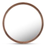The Alcott round mirror celebrates wood’s inherent beauty with a thoughtful double-frame detail. Each mirror showcases the meticulous finish, enhancing the wood’s rich, warm tones and creating a serene focal point in entryways, bedrooms, or living areas.