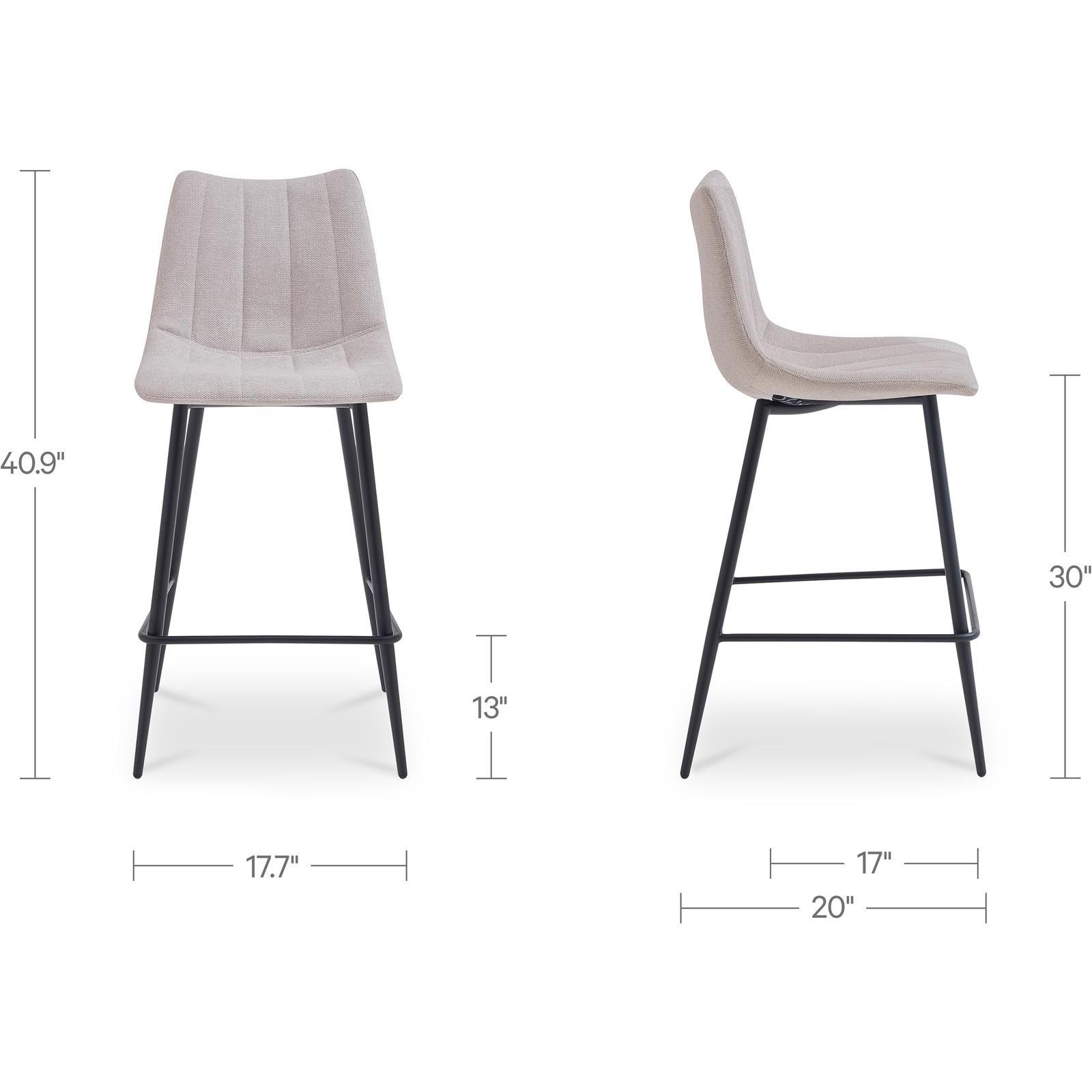 A contemporary bar stool that is as sleek as it is comfortable. The Alibi bar stool features striking vertical line stitches that add subtle detail to its monochromatic design. A soft easy to clean performance fabric seat adds comfort and classic appeal.