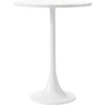 Architecture’s inherent artistic quality is felt from every angle of this side table. Styled within the contemporary living space, its smooth edges add a calming, comforting vibe. Composed of white natural marble with a matte white powder coated aluminum base, it proves no pop of color is required to draw in the eye.