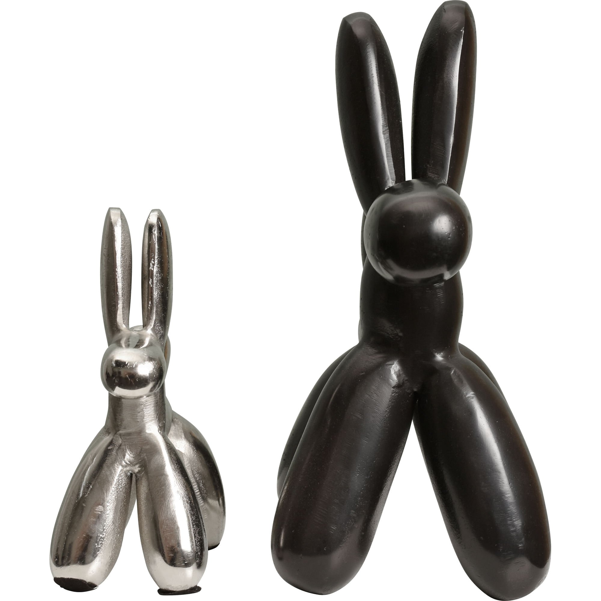 Pin the Pop Art design of this set of two dog statues on your interior inspiration board. Finished in metallic bronze and raw nickel, the air-filled aluminum shape gives each pup an inflated quality reminiscent of birthday party balloon animals. A must have accessory for modern art enthusiasts, the metal dog figurines stand ready to play on shelves and tabletops throughout the home.