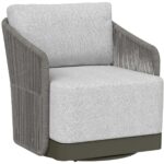 Introduce refined modern style outside with this impressive swivel armchair from the Outdoor by SUNPAN collection. Upholstered in stinston white fabric with a powder-coated greige aluminum frame. Completed with cream rope weaving on the seat exterior.