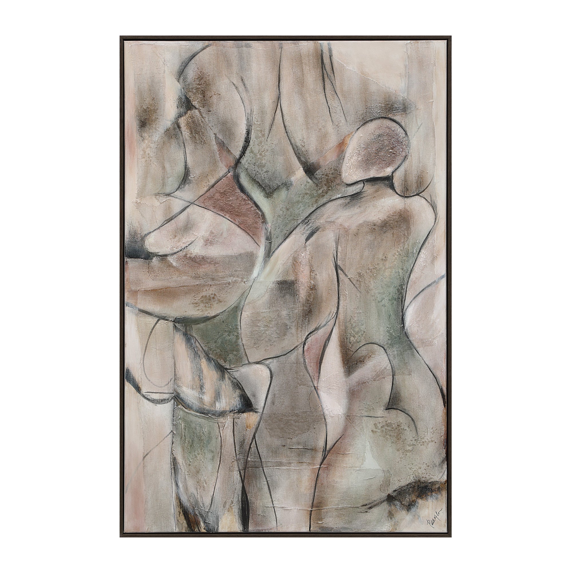 Transform any wall with the tactile drama of the Alloy hand-painted abstract artwork. Layered textures of sand gel, gesso, and plaster on cotton canvas create depth and dimension, while a sleek black oak frame adds modern polish. Ready to hang vertically or horizontally, it brings sculptural sophistication to any contemporary interior.
