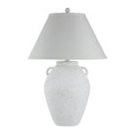 Just the thing to complete the look of your latest transitional design project, this timeless table lamp will light up the room in classic style. Featuring a double-handled jar silhouette and an off-white hand-painted patina, this clay-look lamp delivers enduring charm to any space. Finished off with an ivory drum shade, the result is warm and welcoming.