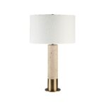 In a beautiful marriage of travertine and antique brushed brass, this table lamp delivers a timeless aesthetic that’s a great fit for transitional or contemporary interiors. You’ll love how it elevates any space while filtering dimmable light through its ivory linen drum shade to create the perfect ambiance for every occasion.