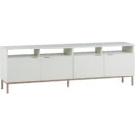 Crafted in Indonesia, this beautiful media console and cabinet will bring modern style and elegance to living, lounge and home office spaces. Designed with naturally rustic finished oak wood and a matte black iron frame. Features four cabinets for added style and function. Coordinate with the Ambrose modular wall desk, and large and small bookcases for a space saving design. As wood is an organic, porous material, these pieces will contain natural variation of texture and may also exhibit fine indentations and cracks. Wood pieces will also display a disparity of colour and grain, and visible knots and burls that add to the character of each piece.
