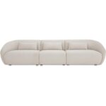 Offering a generous seat wrapped in rich, warm-toned upholstery, the Amelia modular sofa allows numerous configurations to fit any interior design or spatial requirements. Its high back and sloped arm curvature combine to offer a supportive seat, inviting guests to lounge and relax. For added comfort, a lumbar cushion is perfect for posture as this piece radiates a welcoming ambiance. Consists of 3 modular parts: 1 slipper chair, 1 left arm facing chaise, and 1 right arm facing chaise for easy switch around.