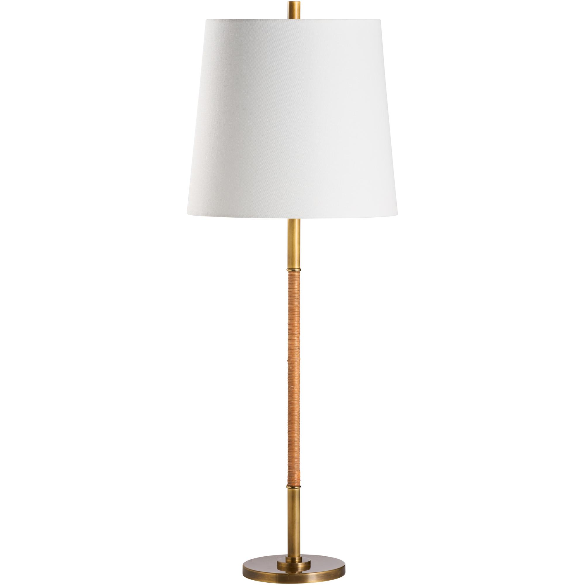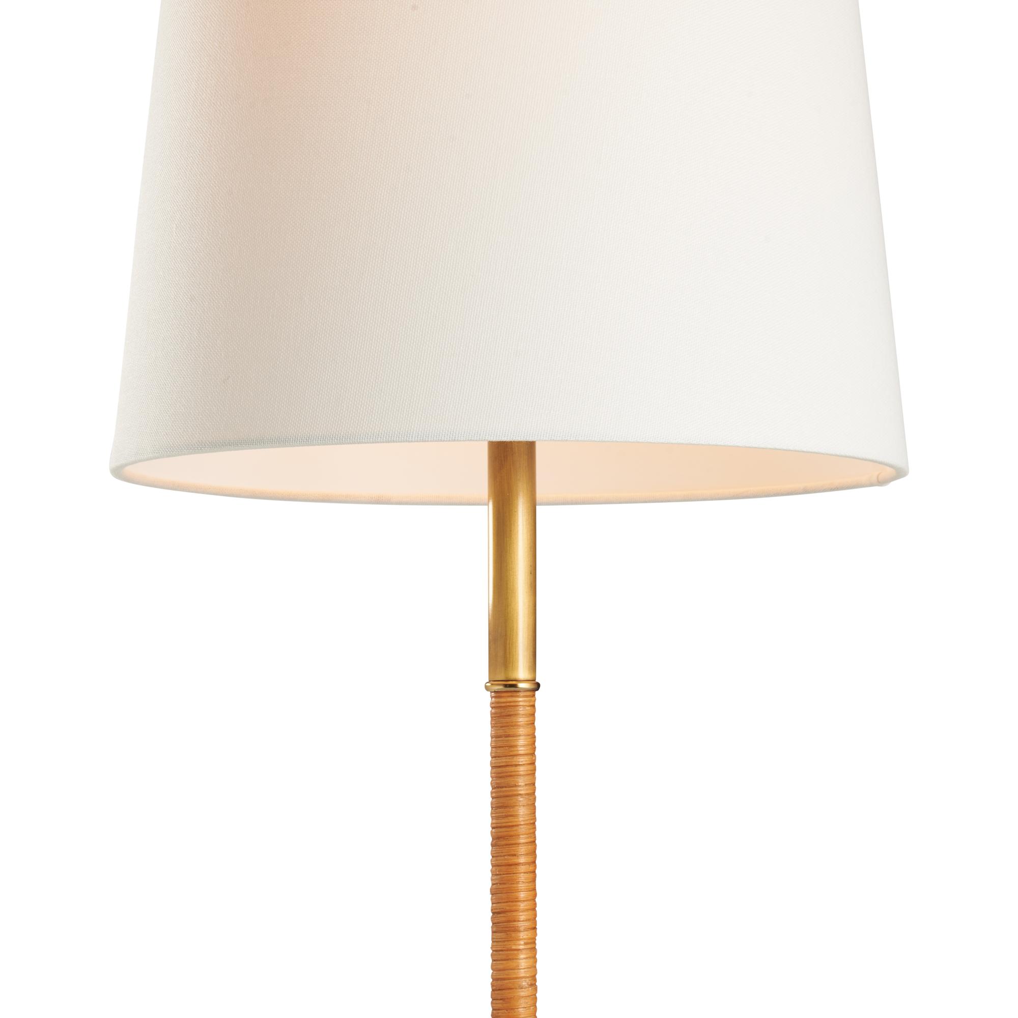 This elegant metal lamp features a aged brass finish, creating a clean and modern aesthetic. Its body is wrapped in natural rattan, adding a layer of texture and warmth that contrasts beautifully with the smooth metal. The woven rattan detail brings an organic touch, enhancing the lamp’s visual appeal while offering a subtle, handcrafted feel. Perfect for coastal, bohemian, or contemporary spaces, this lamp blends functionality with stylish design, casting a soft, inviting glow. Designed by Jamie Merida.