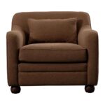 The Amira accent chair’s graceful silhouette promises cloud-like comfort, inviting you to sink in and unwind. Upholstered in durable C0 performance fabric, and accentuated with a piping details it marries beauty with practicality. The high back curves to embrace, while gentle flared arms and plush lumbar cushion offer enhanced comfort.