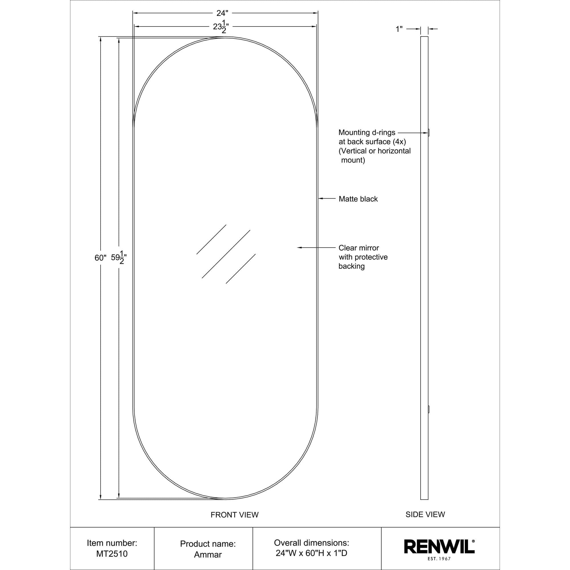 Set to capture the everyday appearance in all its glory, this mirror serves as a check in point for passersby in the home. With matte black powder-coated iron frame, it seamlessly integrates into modern, industrial, and contemporary interiors alike. Its 24-inch by 60-inch build can hang horizontally or vertically offering a variety of styling options.