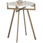 This eye-catching side table exudes a sense of rustic elegance. Features an antique brass iron frame with a round white or black marble top. As marble is a natural material, unique veining, pitting, fissures, micro-cracks and colour variations are all characteristics that add to the uniqueness and beauty of each piece. Made in India. With refined craftsmanship, this design was brought to life by skilled local artisans. By nature, these materials develop unique imperfections such as fissures, markings and colour variations for a truly one-of-a-kind piece.