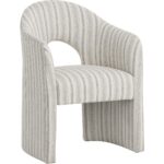 The appealing curves of the Anaya Dining Armchair will cradle you in exquisite comfort. Crafted with a beautiful arched silhouette that will add elegance to a dining table. Fully upholstered in our striped gifford script fabric for a versatile seat that can also be used as an accent chair.