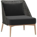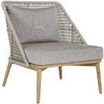 Lose track of time while relaxing in this outdoor lounge chair from the new Outdoor by SUNPAN collection. This modern design features a tapered seatback covered in greymix weave with a palazzo taupe seat and natural teak wood base. Suitable for indoor and covered outdoor spaces.