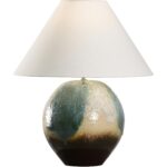 The Aoi Table Lamp, part of the Shiga collection, is hand turned and finished in one of six ancient kilns in Japan. The coal and ash minerals vary and often result in a light, transparent, glass-like glaze with a blueish -green tint. The Aoi lamp is completed with cloth wiring and topped with a refined rolled-edge linen shade. Made in Japan.