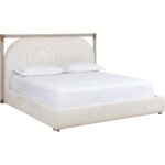 The Arcelia Bed balances a rounded, fully upholstered headboard with a tubular frame that adds a crisp, geometric outline. Artfully wrapped in embossed faux leather for enhanced texture and punctuated with gold stainless steel accents, the frame brings structure and subtle gleam to the modern design.