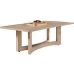 This Scandinavian-inspired dining table offers a bright and airy look. The on-trend design features a sculptural, curved base in a light wash oak wood finish with visible graining. Pairs well with the Arezza sideboard. As wood is an organic, porous material, these pieces will contain natural variation of texture and may also exhibit fine indentations and cracks. Wood pieces will also display a disparity of colour and grain, and visible knots and burls that add to the character of each piece.