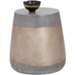 A beautiful side table with a stunning pop of metallic. The Aries is stocked in both gold and silver foil accents that pair perfectly with the industrial grey concrete. A versatile and functional piece