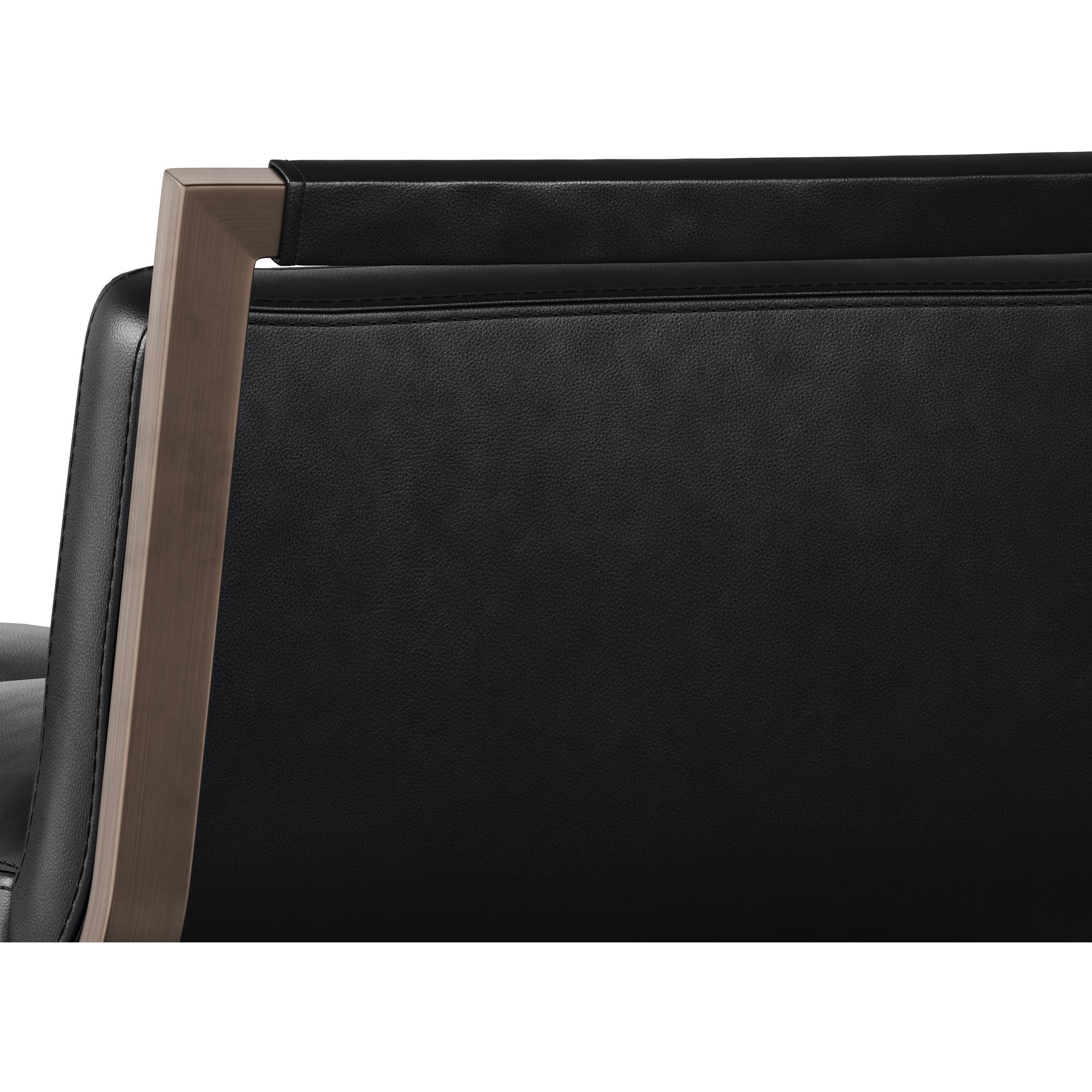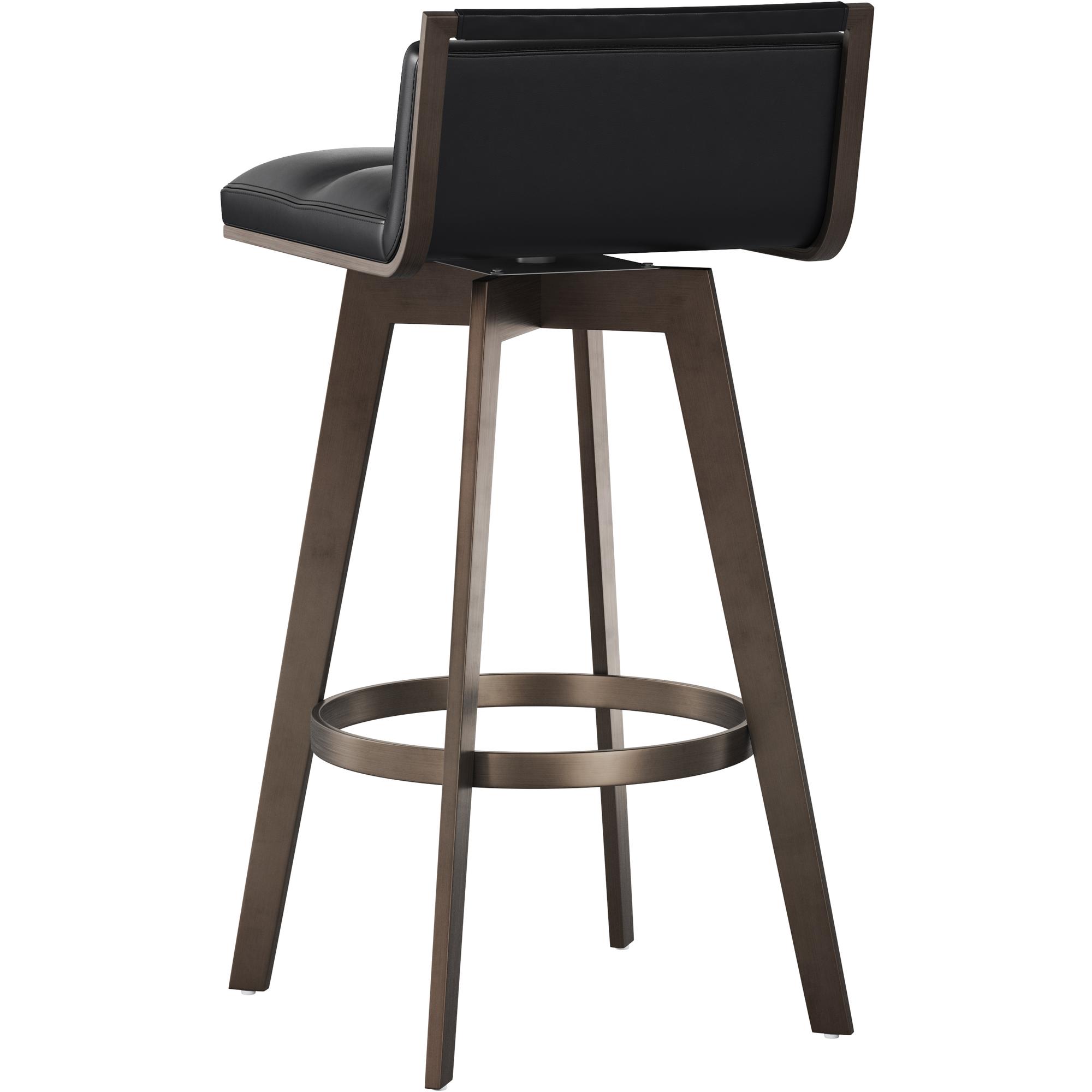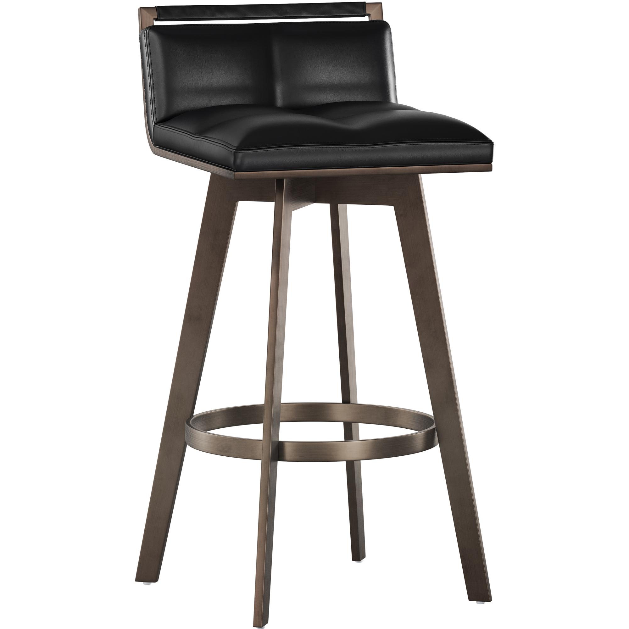 A stylish Art Deco inspired swivel barstool with a low profile seatback. Features a partially exposed frame and legs made of stainless steel with an antique brass finish. Swivel features 360 degree swivel. Suitable for various dining, kitchen and bar spaces of all sizes. Handle With Care: This design has been crafted with faux leather. Faux leather is manufactured to reflect the natural characteristics of leather; as such, colour variations, markings wrinkles, grooves, and light scratches are appreciated characteristics. No two pieces will be alike. Visit our Product Care page for more information on how to ensure the lasting beauty of this piece.