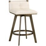 A stylish Art Deco inspired swivel counter stool with a low profile seatback. Features a partially exposed frame and legs made of stainless steel with an antique brass finish. Swivel features 360 degree swivel with 180 degree return. Suitable for residential and commercial environments. Handle With Care: This design has been crafted with faux leather. Faux leather is manufactured to reflect the natural characteristics of leather; as such, colour variations, markings wrinkles, grooves, and light scratches are appreciated characteristics. No two pieces will be alike.