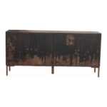 With a rustic finish, this solid hardwood sideboard will feel like it’s been a part of your family for generations. The four doors open up to a fixed, center shelf, providing plenty of storage to help keep your space neat and tidy. Black antiqued finish over a golden stain.