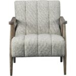 The Aster accent chair brings Mid-century inspiration and a rustic charm with a solid oak frame in an aged brown finish. Its channel detailing and textured upholstery in neutral tones add depth and visual appeal, while its timeless silhouette and meticulous craftsmanship add warmth to any space.