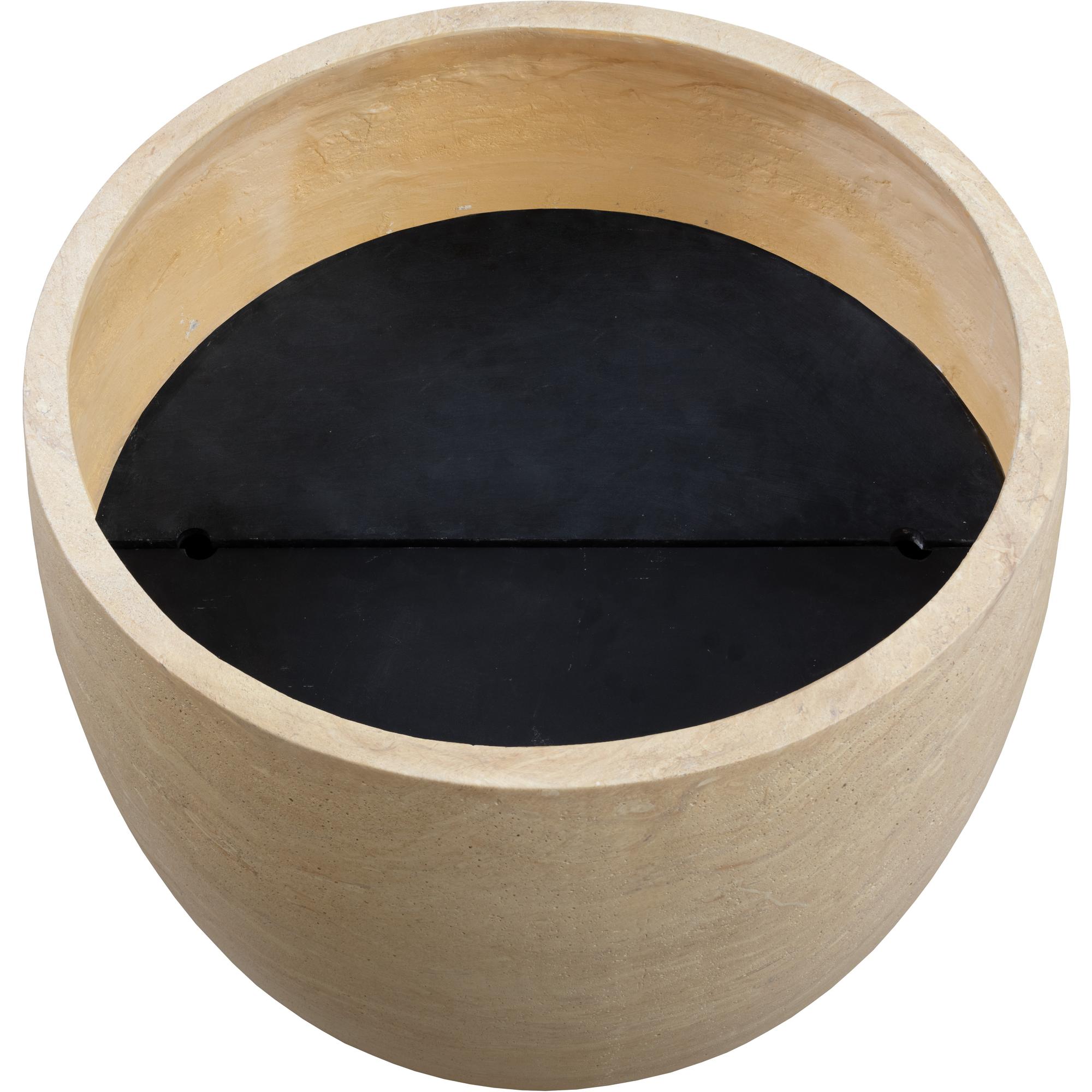 The contemporary form of the large round Kunal Planter allows for a lush display of botanicals that will complement any decor. Constructed from glass fibre-reinforced concrete for increased durability with a protective sealant finish that allows it to withstand the elements. Designed to resemble the look of natural travertine, this beautiful planter will be a welcome addition to large spaces such as hotel lobbies or building entrances. Includes holes for drainage, two steps, and removable shelf inserts. Suitable for indoor and outdoor covered spaces.