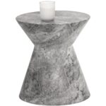 A tapered design on this round concrete end table creates a bold but defined look. Made with a grey marble look finish.