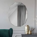 A unique polygonal shape makes this polished all-glass mirror an elegant addition to any room. May be hung horizontally of vertically.
