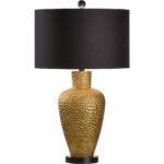 Textured metallic gold finished ceramic vase on black mount.
