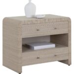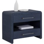 Fusing modern style with a design inspired by global travels, this richly textured nightstand will add definition to any space. Crafted from a wooden frame with an indigo raffia covering. Features two soft-closing drawers with steel and clear acrylic handles. Anti-tip kit included. Also available in a sand colour. Handle With Care: This design has been crafted with raffia. Each item will exhibit unique traits such as texture and thickness variations that add to the natural character of this finely woven material.