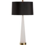 The Ava Lamp features a fluted glass body in a crisp, tapered silhouette, anchored by a polished brass base and topped with a bold black shade. Equipped with a built-in USB port, it effortlessly blends elegance and modern functionality.