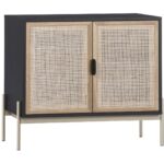 Create a space influenced by global travels with this stylish sideboard crafted in Indonesia. Features two natural rattan cabinets contrasted with a rustic oak wood frame. Black iron feet and matte black iron handles complete the design. Large sideboard also available. Handle With Care: This design has been crafted with rattan. This artisan-crafted material features intricate weaving that results in natural variations where no two pieces are alike. Colour and texture differences are to be expected and embraced with this natural material. Due to the weaving process used, the fibres in this material may display shorter or longer lengths where the weaving ends.