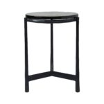 Whether decorating a room from scratch or just looking to inject a fresh new touch, the Avila side table has just what you need. Clean lines and classic materials team up to create a stunning accent end table that’s perfect for many styles of interiors. Sleek and sturdy cast aluminum is treated to a black plated finish and capped off with a smooth recycled tinted glass tabletop. Its three-legged design provides stability while ensuring a great-looking airy feel. Placed next to a lounge chair to create a cozy reading spot, or sofa-side as a living room accent table, this end table is ready to deliver style and convenience to your decorating project.