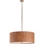 The Avondale Pendant brings warmth and texture with its hand-wrapped rattan shade, offering a refined take on natural materials. Suspended from an antique brass rod and canopy, it casts a soft, ambient glow, perfect for dining spaces, entryways, or living areas.