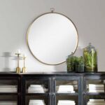 Shine brightly in this minimalistic round wall mirror. Featuring a bronze coated iron frame, it goes above and beyond the standard circular design. Set in the mid-century living room, it will add an element of simplicity to the space.