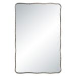 Elevate any room with this irregularly shaped rectangular wall mirror. Measuring 24†x 36â€, and featuring 2-way hanging, it’s ideal for displaying horizontally or vertically above a fireplace, entry table or dining room credenza. An antique nickel frame provides style and durability while crystal-clear mirror glass delivers a distortion-free reflection unique to high-quality pieces.