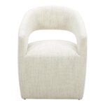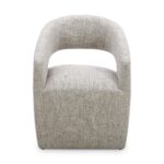 A contemporary dining chair upholstered with a NeverFear performance boucle, Barrow is easy to clean and easy on the eyes with a rolling base that lets you pass the peas and bounce from conversation to conversation. The curved back, along with the ultra-comfortable feather, high-density foam and poly-fill cushioned seat adds living room comfort to the dining experience.