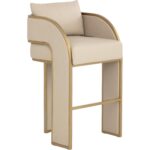 Bold and stylish, the Baz Barstool is sure to turn heads. Featuring a daring silhouette upholstered in napa black faux leather. Gold stainless steel detailing and channel stitching add depth and visual impact to the overall look of the piece.