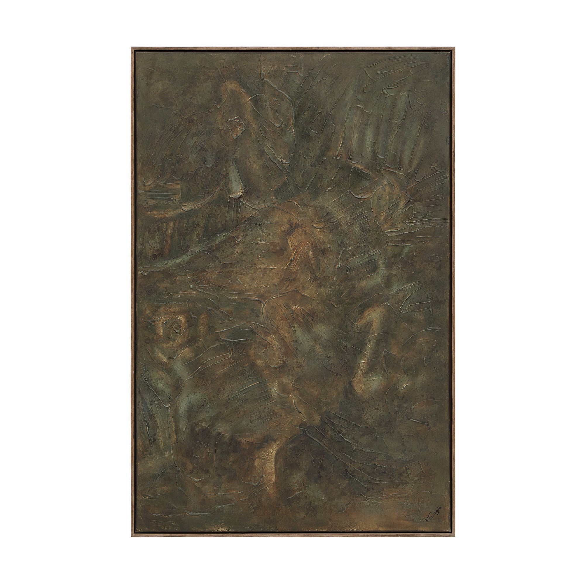 Bring bold texture and modern elegance to your design plan with the Beatrix abstract canvas art. Hand-painted on premium cotton with layered molding paste, plaster, and gesso, its rich, tactile surfaces are framed in dark oak with a sleek, floating mount. Perfect as a striking statement piece in any contemporary interior.