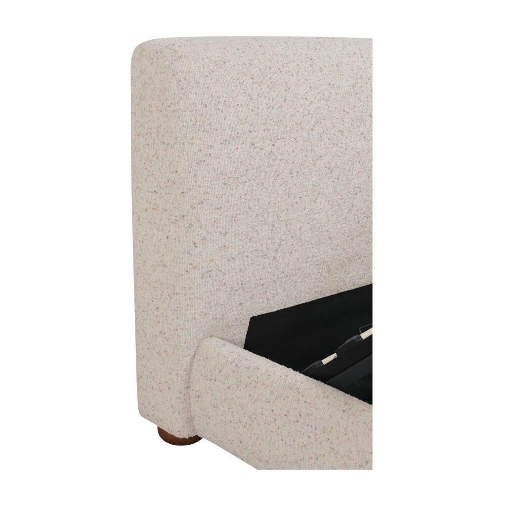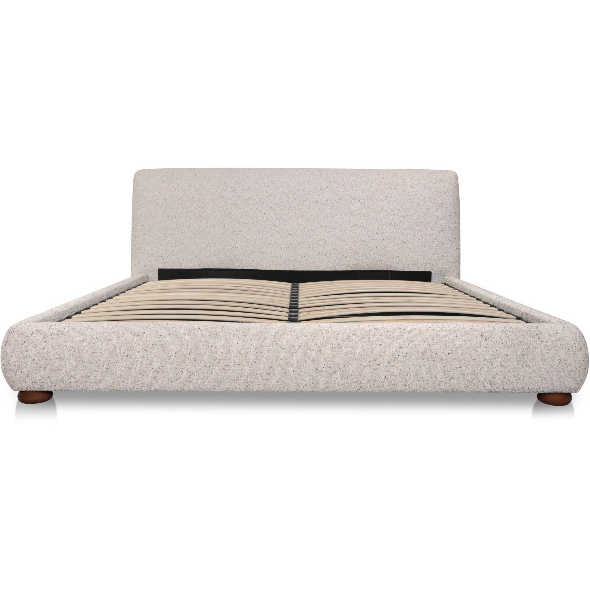 For those who like their comfort with a little character. The Beau Bed pairs a generously rounded headboard with bun-shaped legs, all wrapped in textured speckled light grey upholstery. A hydraulic lift reveals hidden storage, while its sculptural proportions and tactile fabric bring warmth to bedroom spaces. Designed for comfort and crafted for function, Beau makes a storage bed feel like the centerpiece of the room.
