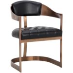 This ultra contemporary stool features a T-shaped back, tapered arms and a powder-coated antique brass stainless steel crown base. Stocked in rhea light barley fabric. Perfectly suited for commercial and residential settings. Suitable for various dining, kitchen and bar spaces of all sizes.