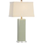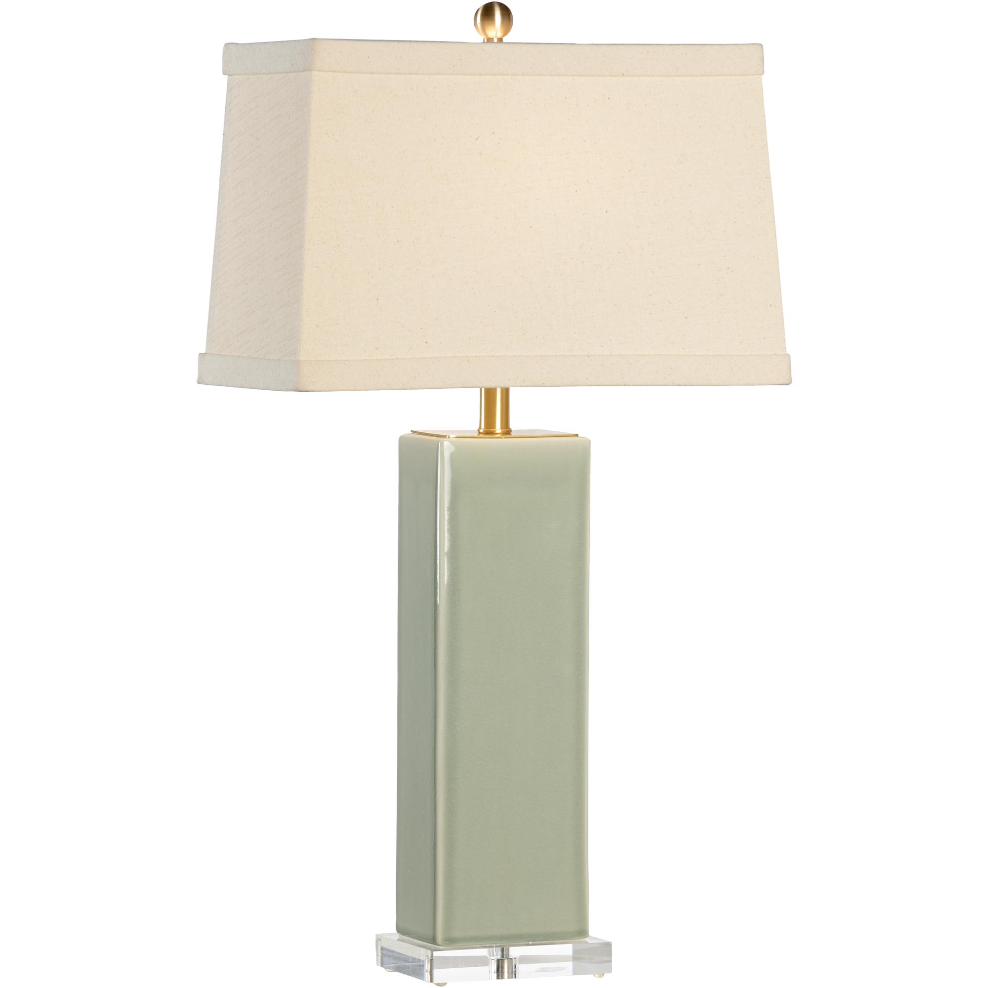 Simple lines and a neutral color palette make the Becker Vase Lamp an ideal choice for any design style. The soft green glazed ceramic is mounted on a clear acrylic base with warm antique brass details. A beige linen shade provides a luxurious element. Display on a console, credenza or chest to bring a complementary light solution to your existing decor.