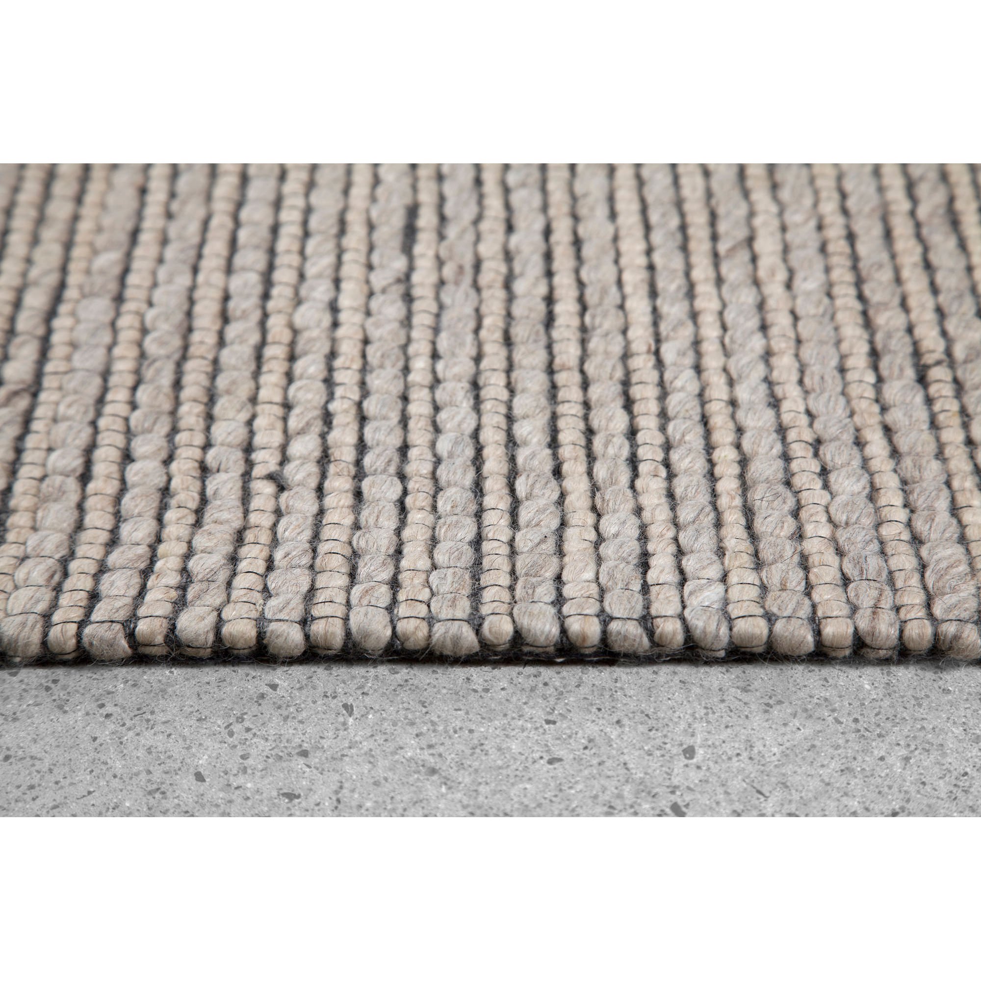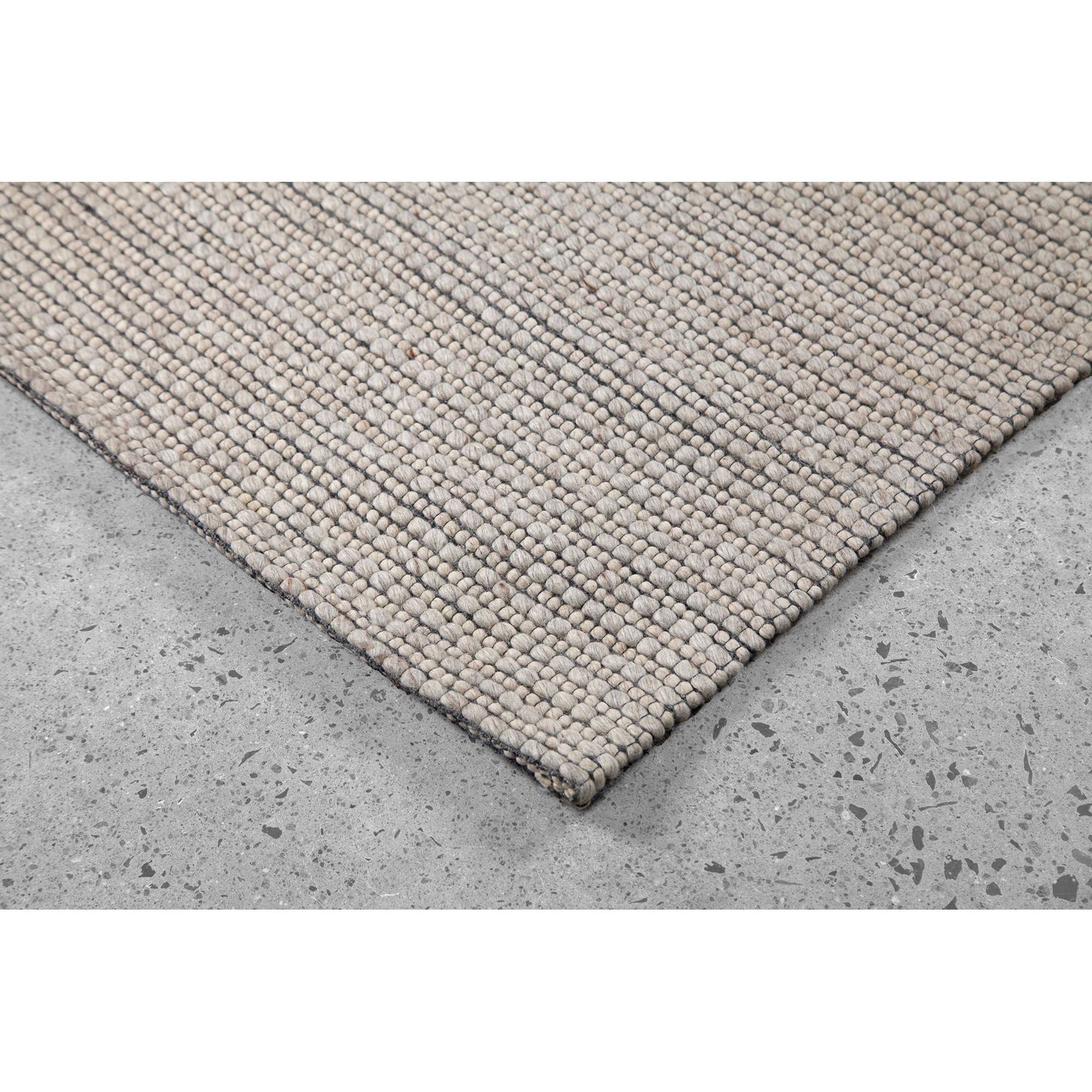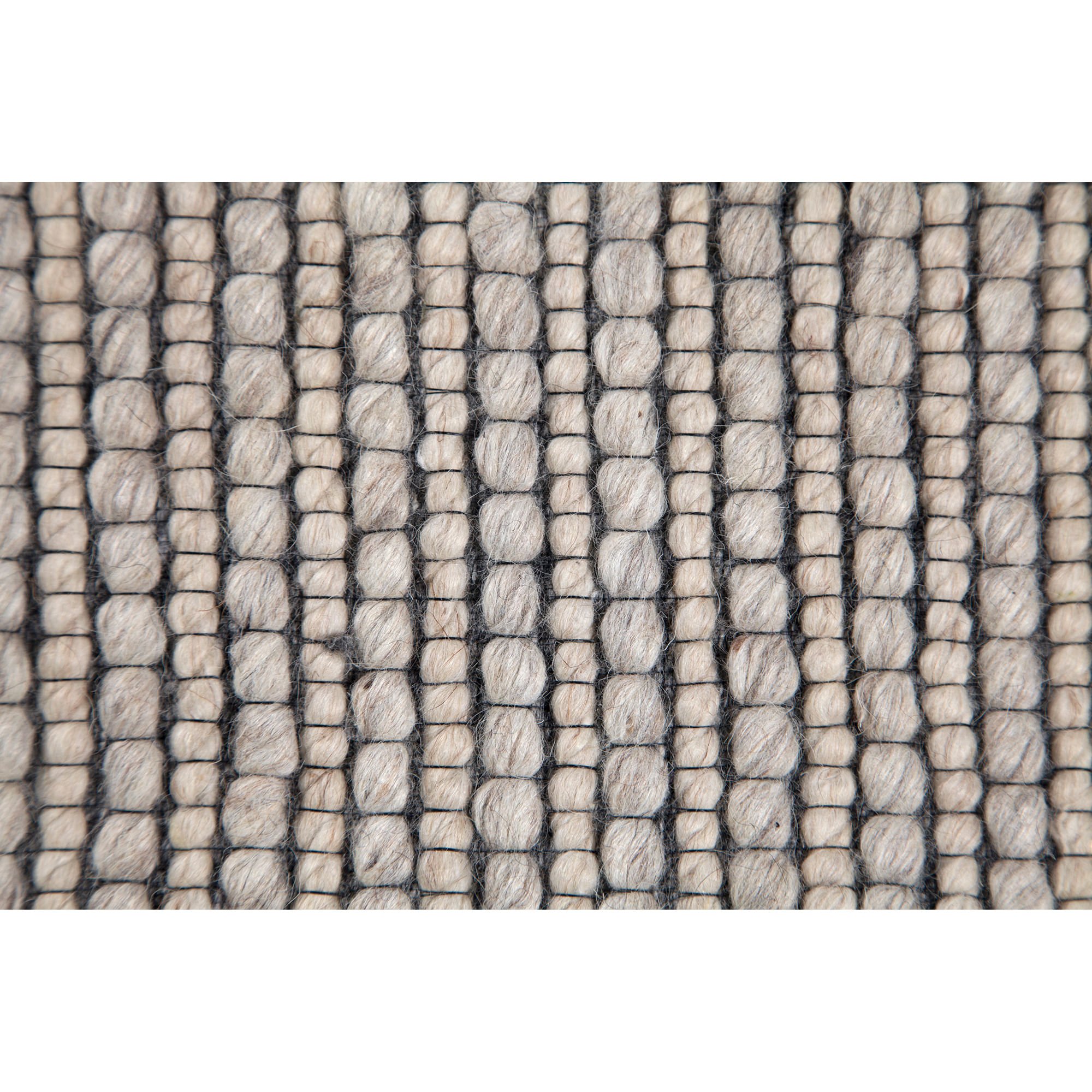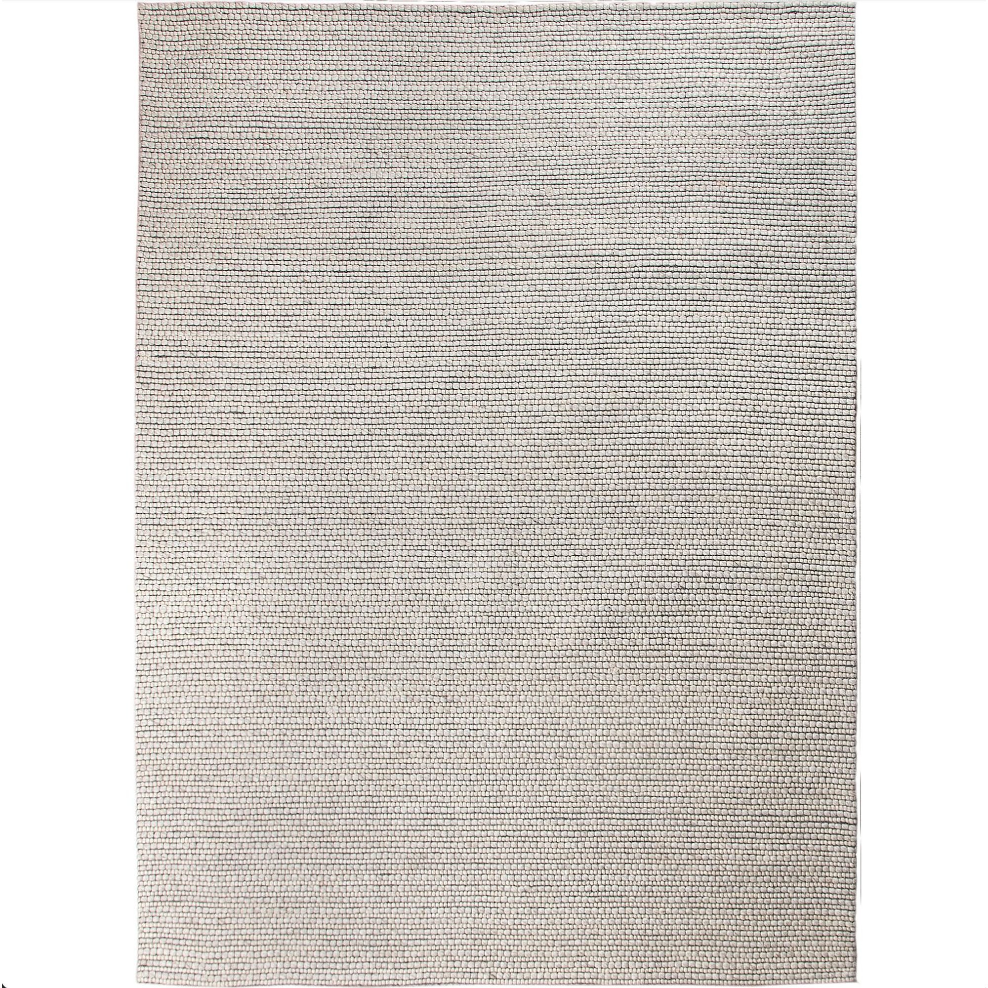 With a solid pattern that’s right in every room, this eclectic area rug offers versatile style that suits classic and contemporary floors. The timeless beauty of this decorative floorcovering is evident in the combination of natural wool and soft viscose fibers, hand-woven with craftsmanship inherited from generations of artisanal rug weavers. The rug’s neutral cream and light grey color palette layers effortlessly beneath couches, coffee tables and beds.