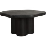 An effortless blend of natural beauty and modern form, the Bellona Dining Table anchors the room in style. Made from solid acacia wood in a rich black finish, it features an organically shaped top resting on a curved pedestal base.