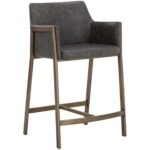 The Bernadette Counter Stool features a shapely design with a powder-coated antique brass frame. Upholstered in bravo admiral faux leather for added style and durability. Handle With Care: This design has been crafted with faux leather. Faux leather is manufactured to reflect the natural characteristics of leather; as such, colour variations, markings wrinkles, grooves, and light scratches are appreciated characteristics. No two pieces will be alike. Visit our Product Care page for more information on how to ensure the lasting beauty of this piece.