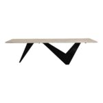 The Bird’s freeform iron base gives it an abstract look, which is grounded with a solid acacia tabletop. Beautiful contemporary design for your dining area. The larger of two sizes.