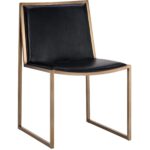 The modern styling of this dining chair will add both glamour and edge to dining spaces. Features a sleek and streamlined antique brass frame with a smooth castillo cream faux leather seat. Handle With Care: This design has been crafted with faux leather. Faux leather is manufactured to reflect the natural characteristics of leather; as such, colour variations, markings wrinkles, grooves, and light scratches are appreciated characteristics. No two pieces will be alike.