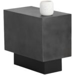 Turn heads with this contemporary, rectangular end table that features a bold design. Crafted with an antique brass steel top and a matte black powder coated steel base. Coordinating end table also available. Also comes in a gunmetal finish.