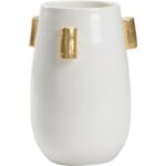 Make a statement on tabletops in your home with the Blanco Vaso. Hand sculpted by master artisans in Italy, this large white glazed vase features elegant gold leaf handles. The neutral color palette is ideal for adding floral stems of color to create a focal point in a dining room or formal space.